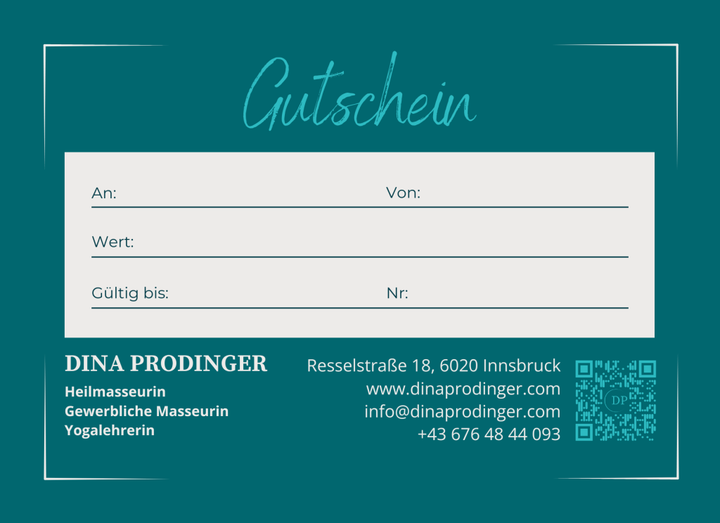 Egal ob für Freunde, deine Familie oder deine Mitarbeiter – sowohl für Massagen, als auch für Yoga gibt es einen Gutschein.